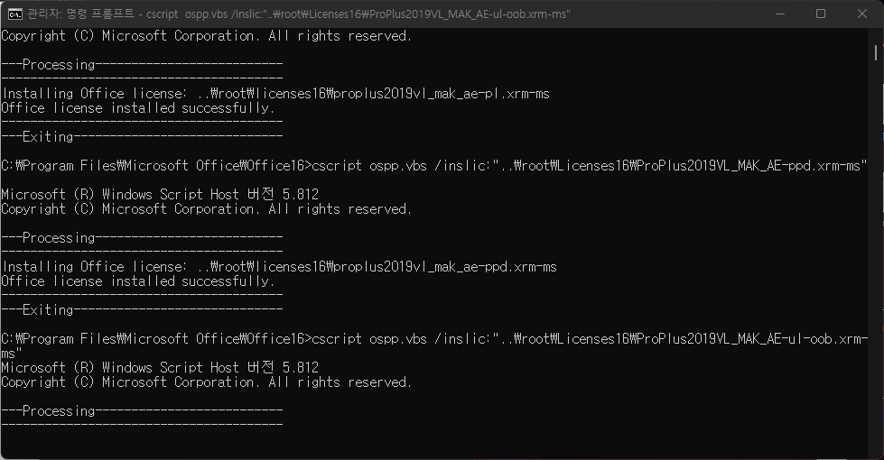 office 처음 실행시 라이센스에 문제가 있다 나올수 있으나 정상적으로 인증 됩니다.