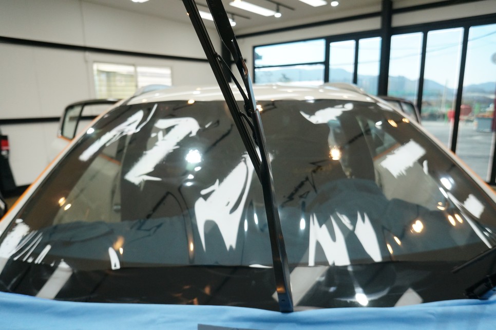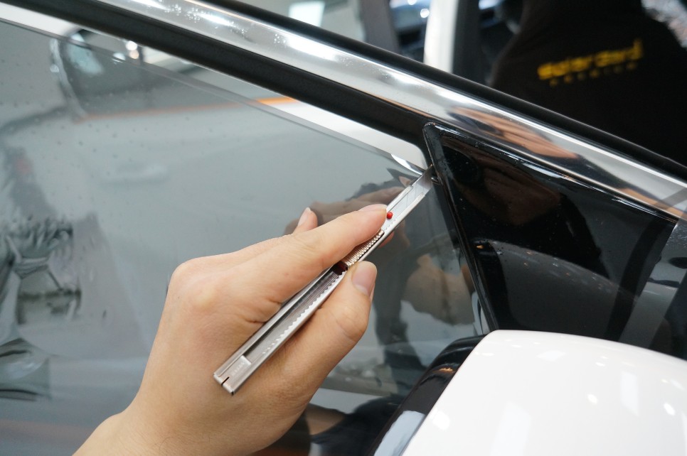 전면유리 시공을 위해 필름 성형을 준비합니다.